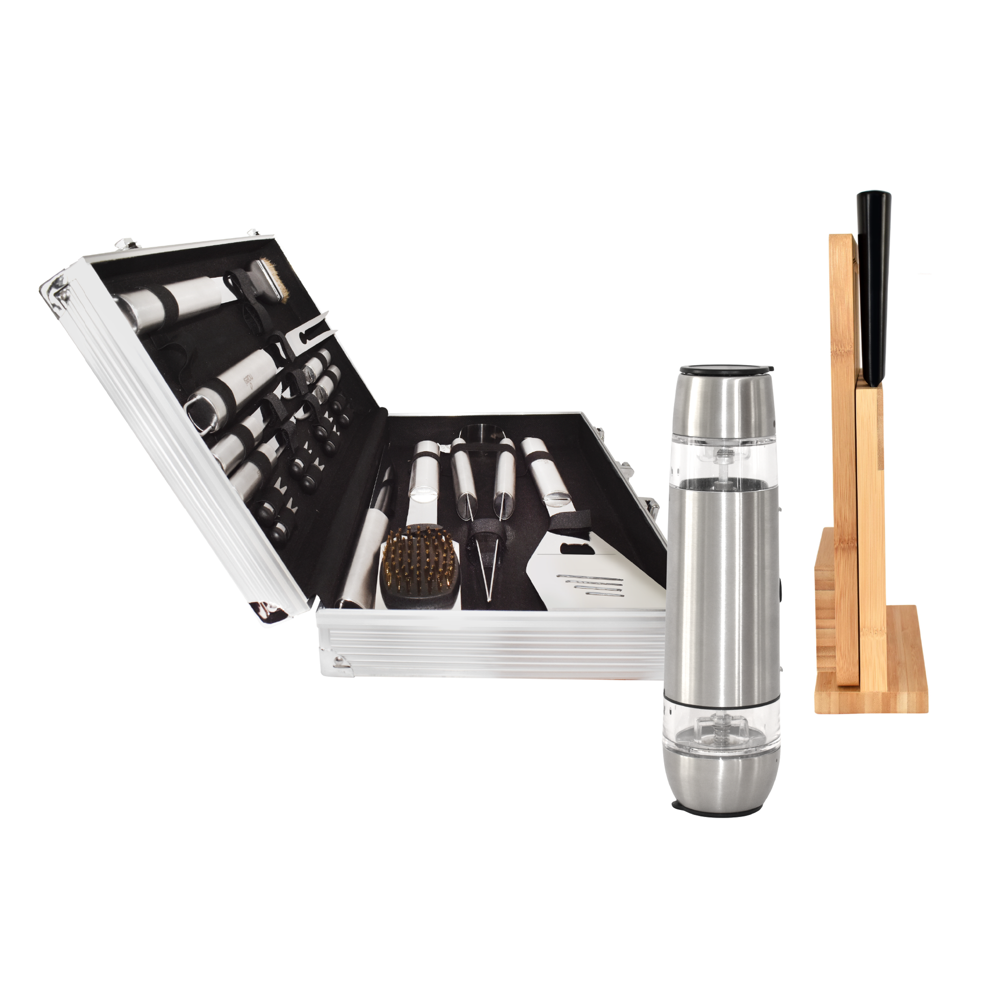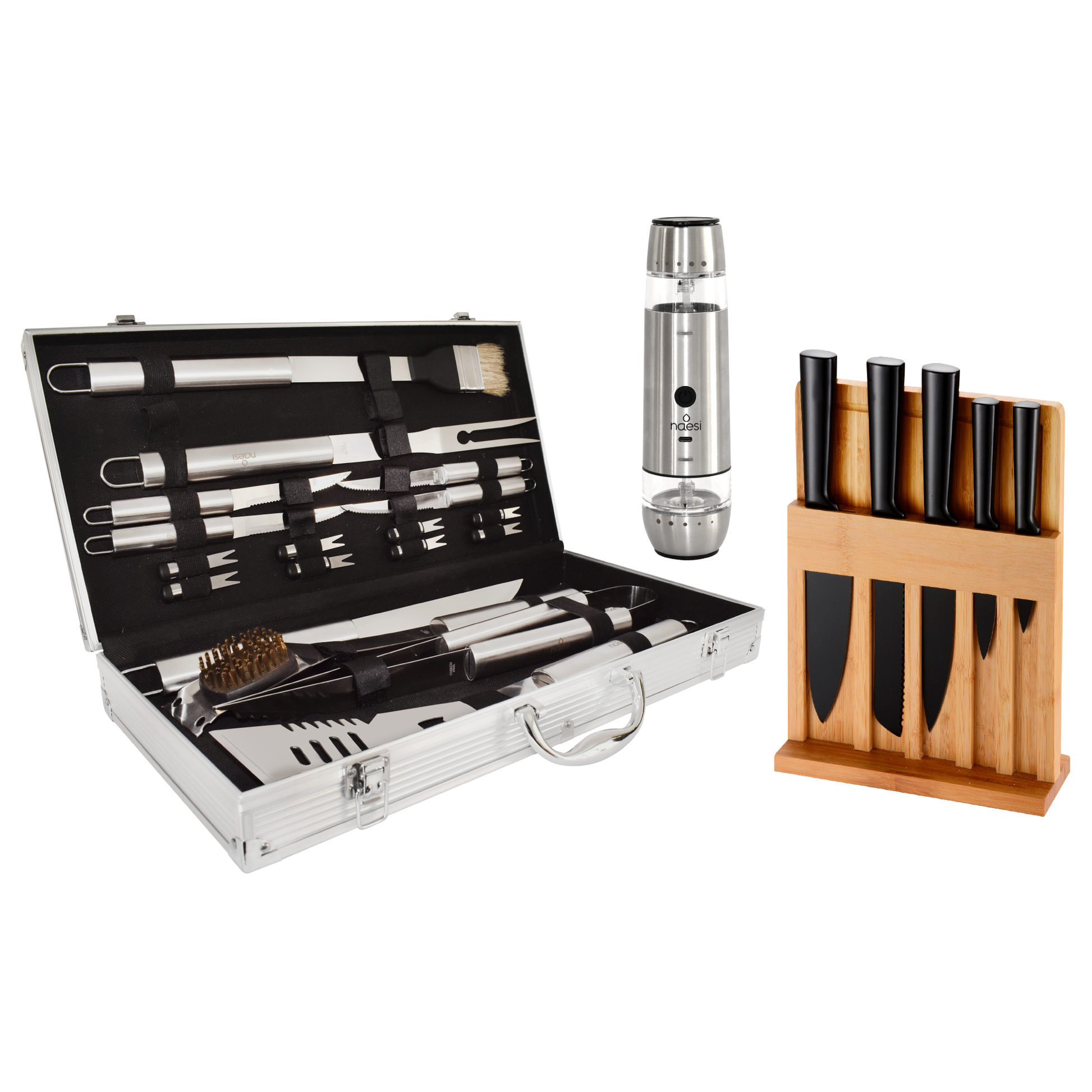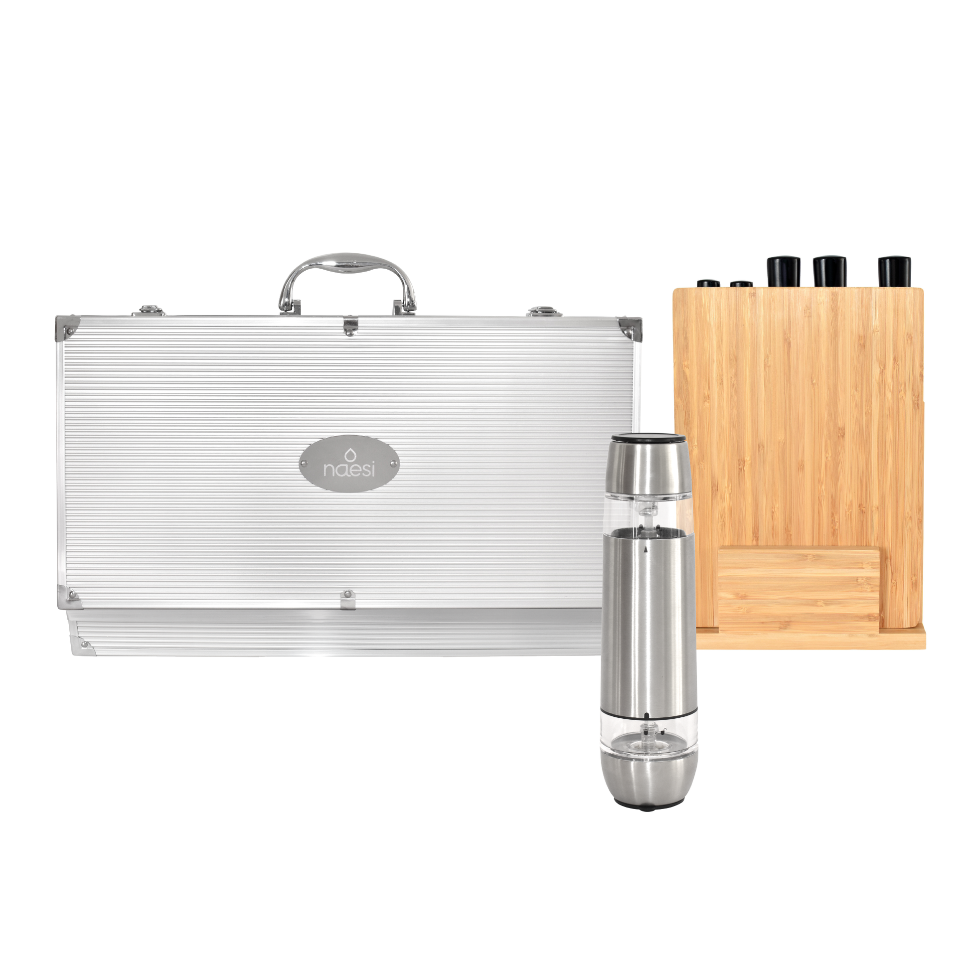 Combo Naesi 3 en 1: Parrillero, Cuchillos y Salero Eléctrico