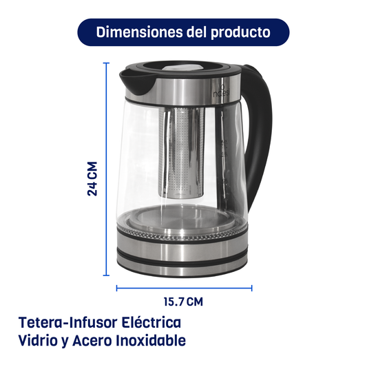 Tetera Eléctrica Con Infusor 1.7 Litros De Vidrio Templado Naesi